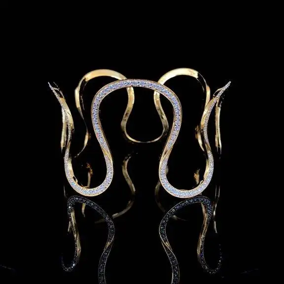 Luxury Gold and Diamond Wave-Design Cuff Bracelet